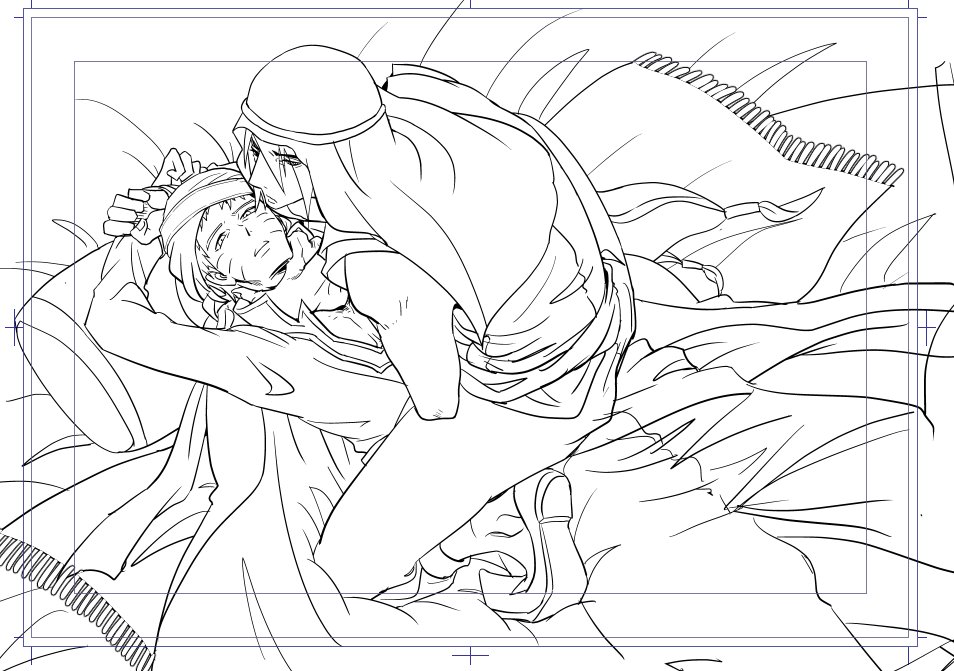 安定の遅刻💪お題「独占欲」お借りしました。線画時間内、色ぬり+15分 #サスナル版深夜の60分一本勝負