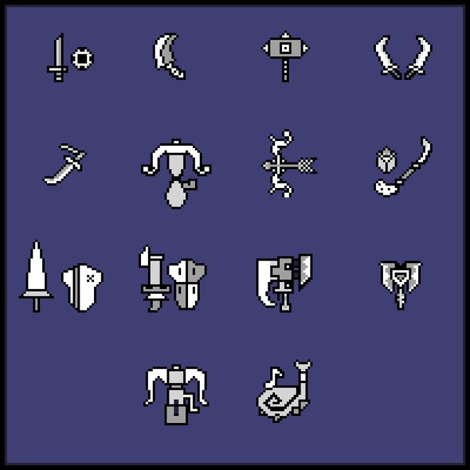 thinking about doing some pixel monster hunter weapons and items might even do some pins whos to say #pixelart #MonsterHunter #MonsterHunterRise #Fanarts #pixelartist