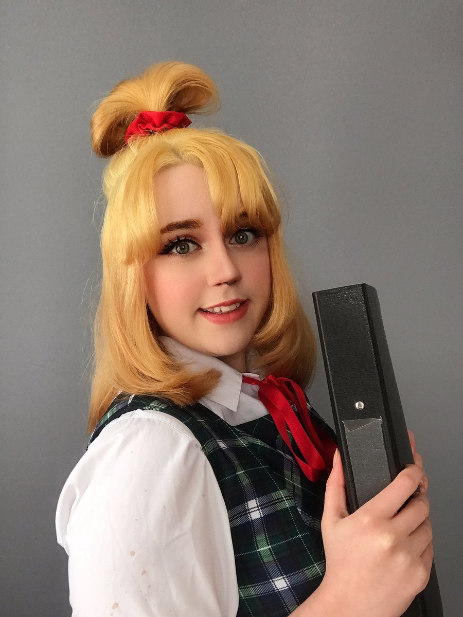 The worlds no.1 secretary reporting for duty with her vacation juice 🍹 #acnh #animalcrossing #isabellecosplay #cosplay