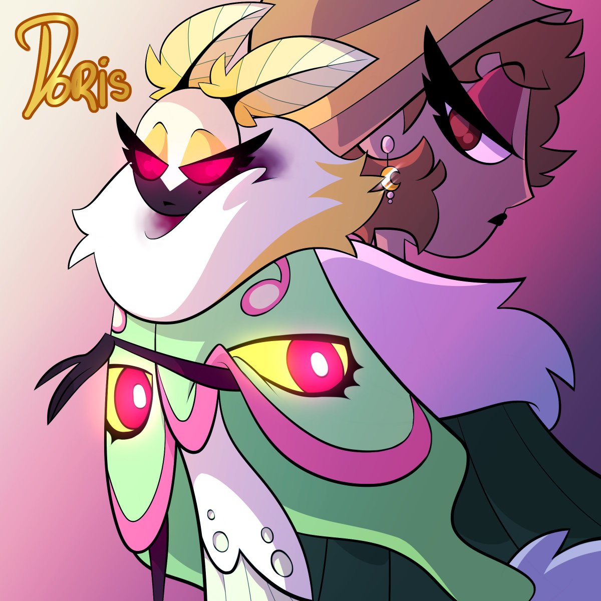 was chatting/doodling w/ @Inky_Spots, & we both came up with a pair of Hazbin moth OCs~ meet my lunar moth girl; Doris (she died in the 20's) #HazbinHotelOC