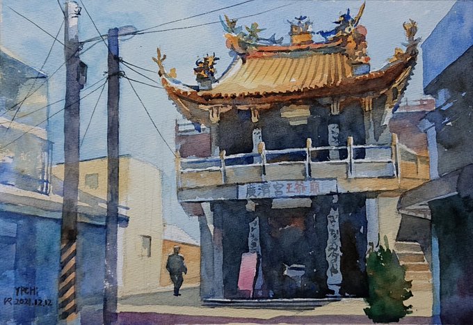 My painting "Yen-Shui Kuang-Chi temple", 鹽水月津廣濟宮,26*37cm #Watercolor #illustration #artwork #watercolorpainting #Watercolourpainting #水彩画