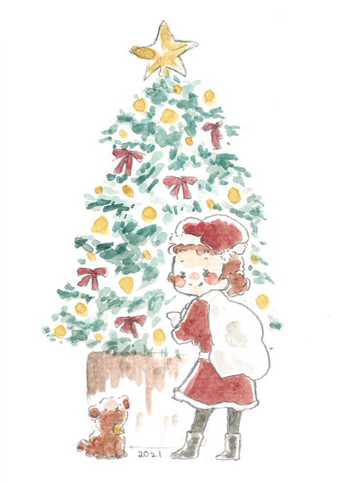 5 45 準備はいい? #イラスト #水彩イラスト #クリスマス #クリスマスイラスト #絵描きさんと繋がりたい #冬の創作クラスタフォロー祭 #ジイノエ 21/12/25 00:37