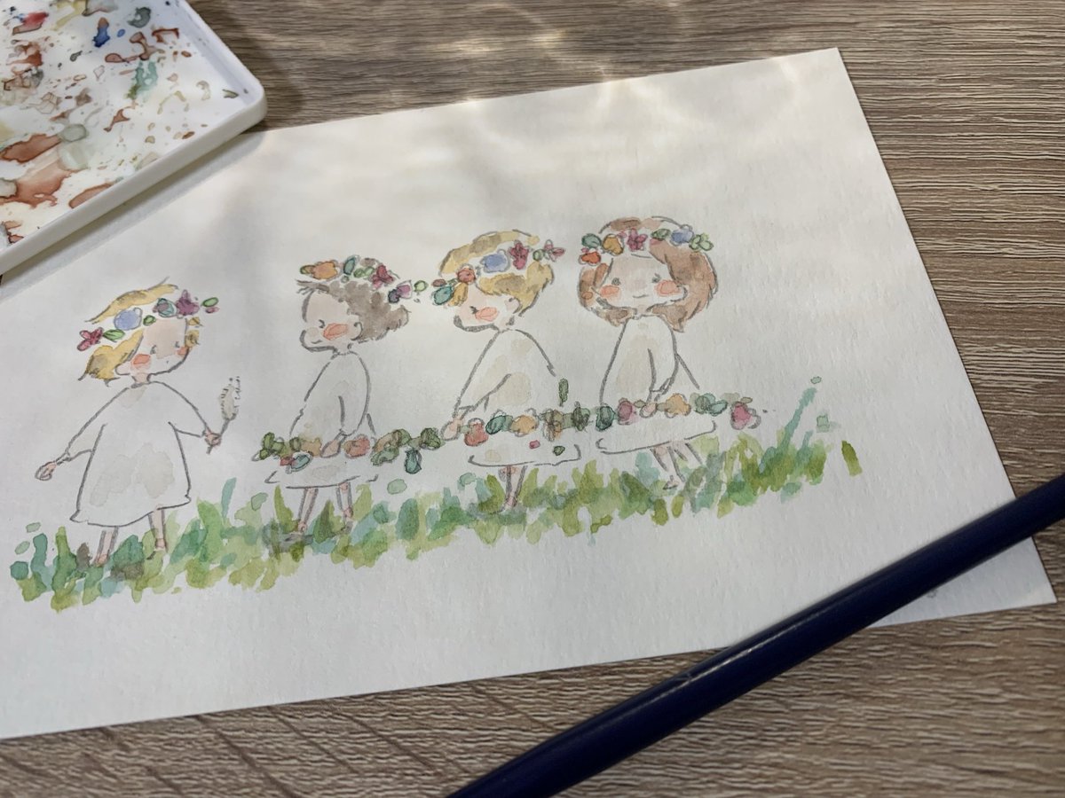 紡ぐ #ひなたぼっ子たち #透明水彩 #illustration #イラスト #水彩 #水彩イラスト #お絵描き #ジイノエ