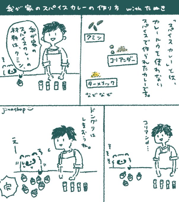 我が家でスパイスカレー🍛が流行っているのでレシピ漫画を描きました(嘘) #たぬき #漫画が読めるハッシュタグ