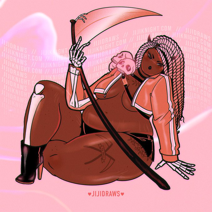 Hi #PortfolioDay! ❤︎ I'm Jiji and I'm a pinup illustrator! I like to draw body positive gals, their romantic pals, and a lot of pieces where cute and spooky meet. ❥ JijiKnight.com/Babetown ❥ Patreon.com/jijidraws {Currently looking to add your soul to my sticker club!}