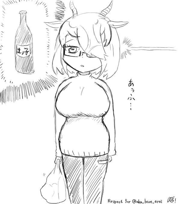 @aka_bare_arai 様のブラバイさんを描きました。 急に飲みたいお酒の気分が変わるブラバイさん。 ※無許可のため怒られたら消します。