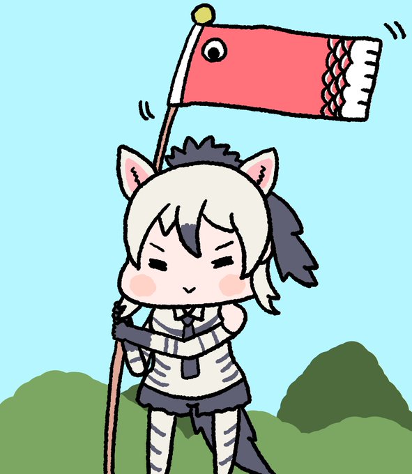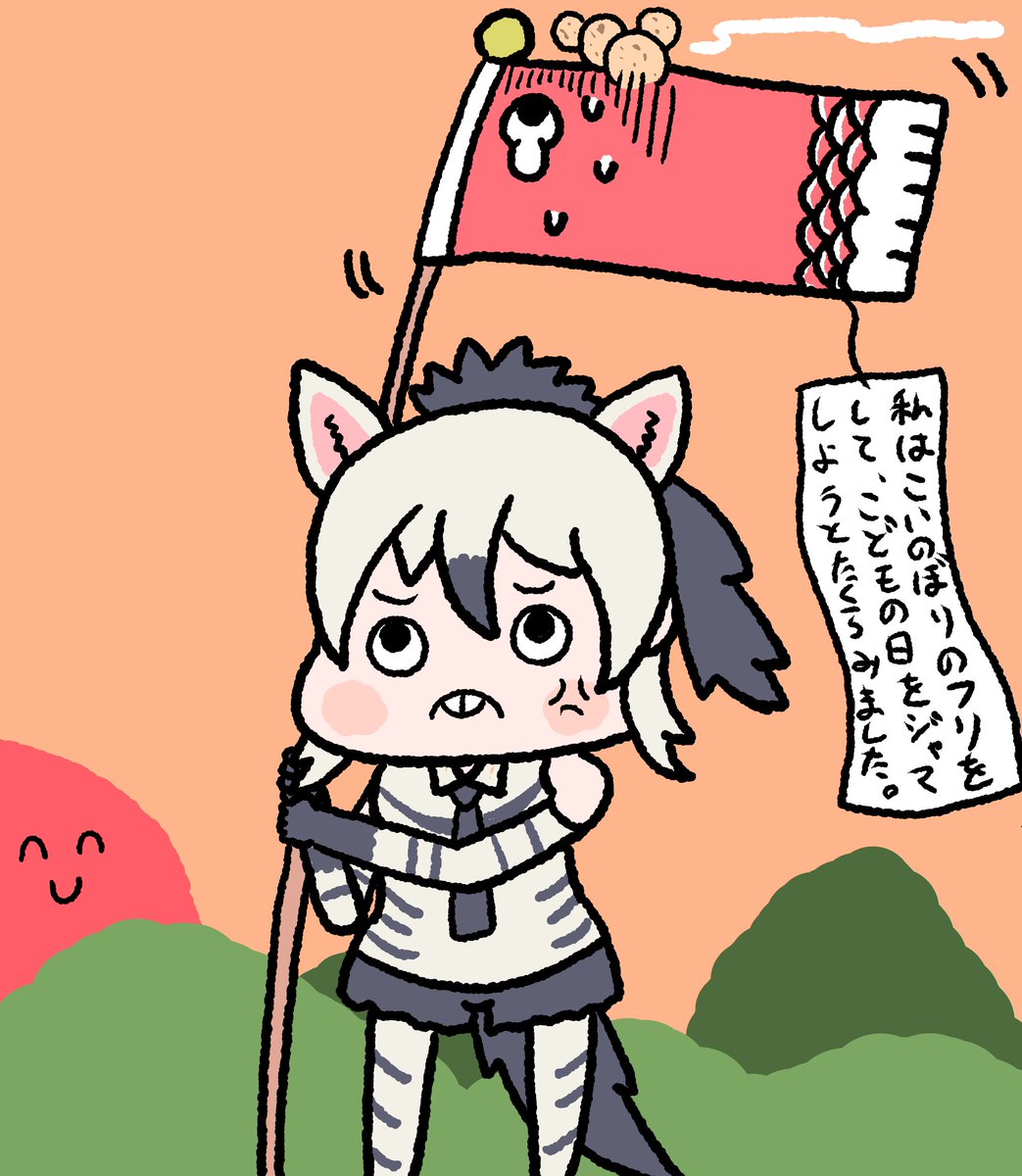 こどもの日に悪さをしようとしたセルリアンを成敗したアードウルフさんを描きました。 #けものフレンズ