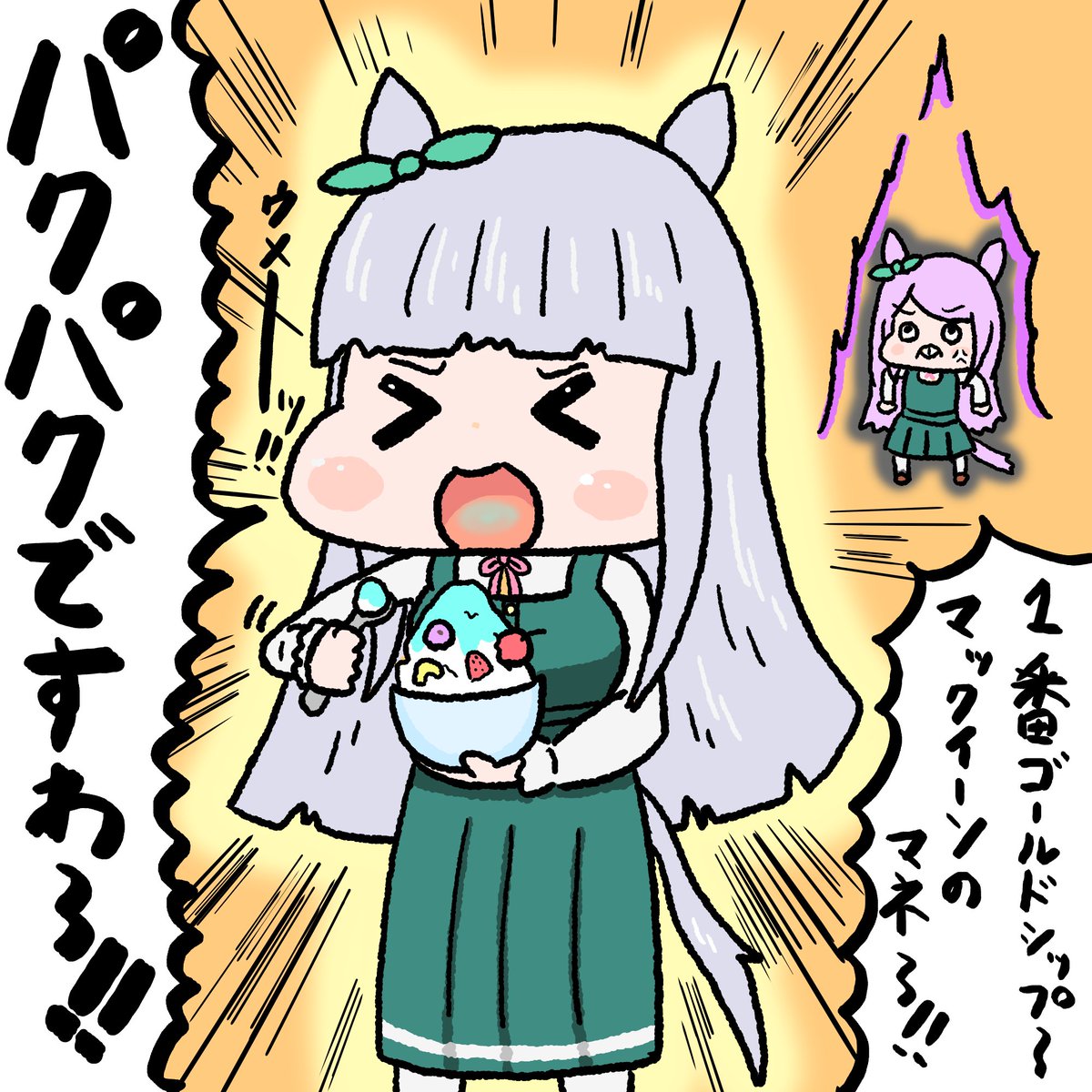 しゅき先生の作品に勝手に便乗して、スイカブレイクしたナリタブライアンさんのスイカが口に飛び込んできて美味しそうにスイカを食べるマチカネタンホイザさんとマチカネフクキタルさんを描きました。 #ウマ娘プリティーダービー #怒られたら消します twitter.com/melon_atatame/…