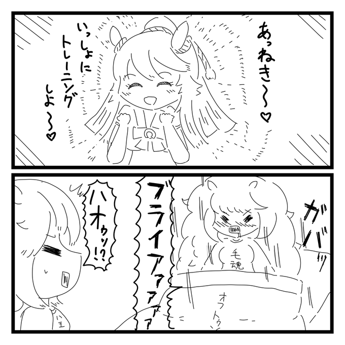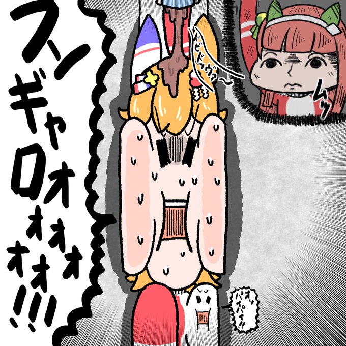 リスペクト作品 壁に挟まった挙句、スズカさんのサバ缶汁の犠牲になるマチカネフクキタルさんを描きました。 余計なのが見えていますが、スズカさんの目が光っているので問題ありません。 #ウマ娘 twitter.com/gggcn9a/status…