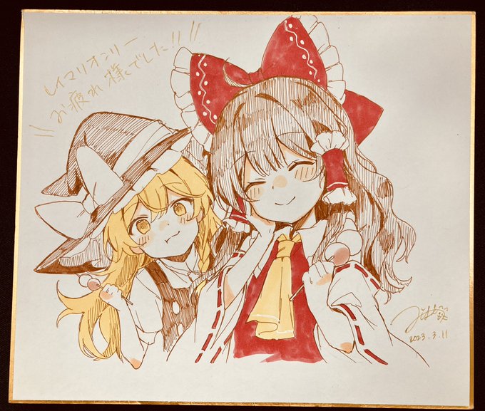 267 1892 ◆新刊告知◇ 『SUM UP REIMARI!』B5/58P/\1500 私が今まで描いてきたイラストをピックアップして 年代別にまとめたイラスト本です! 70個以上のイラストが入っています。 (描き下ろしは少ないです) 東方合同祭事捌「マイフレンド捌」で 【霊25】にて頒布予定です。 よろしくお願いします! 23/03/07 21:22