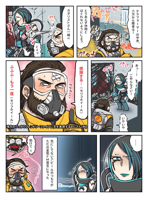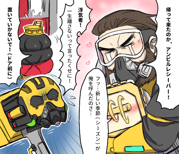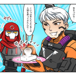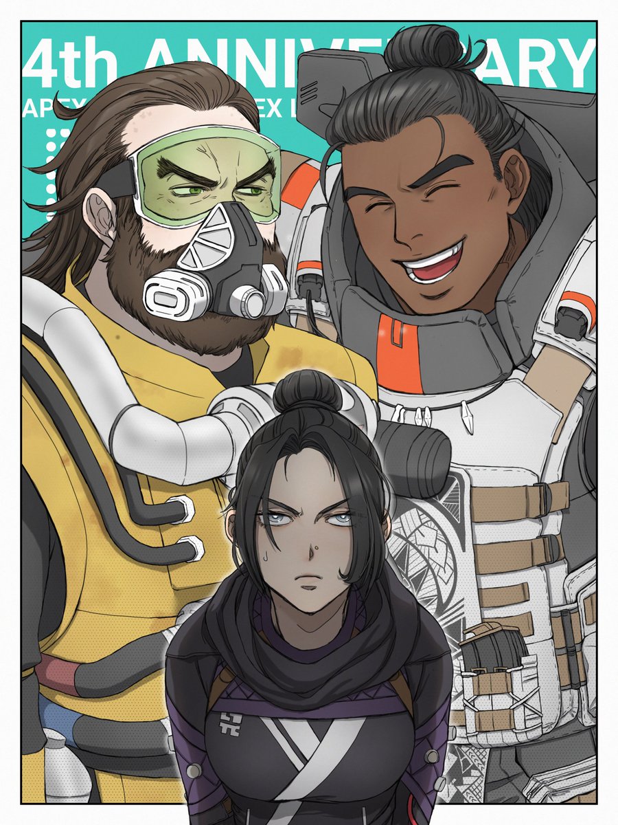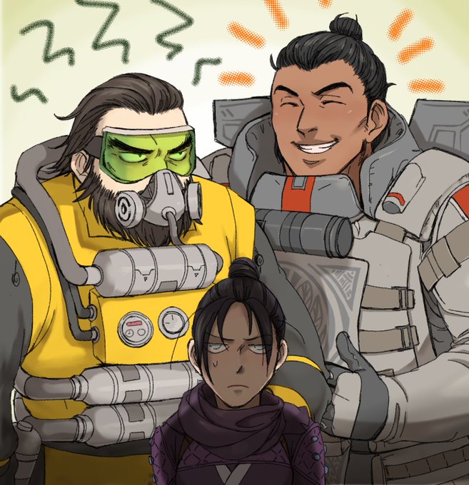 Apex Legends、4周年おめでとうございます! 丁度3周年イベントの時期にハマったので私のプレイ一年記念でもあります☺️たくさんの出会いと楽しい思い出をありがとう!ガスおじ最高!鉄壁最高!! 記念に初期に描いたイラストを描き直してみました🥳ガスおじを描き続けて一年だ〜! #ApexLegends