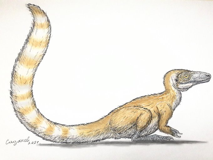 Unpublished drawing of Sinosauropteryx, postponed indefinitely, but completed long before the new year. #Sinosauropteryx #paleoart