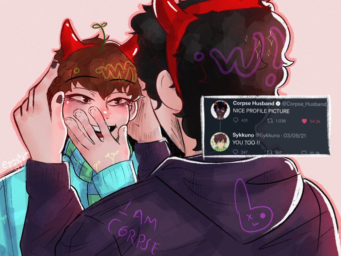 : ¨ ·.· ¨ : ` · .. · ` what are they talking about?🌱🌧 #SykkunoFanart #CorpseHusbandFanart #corpsekkuno