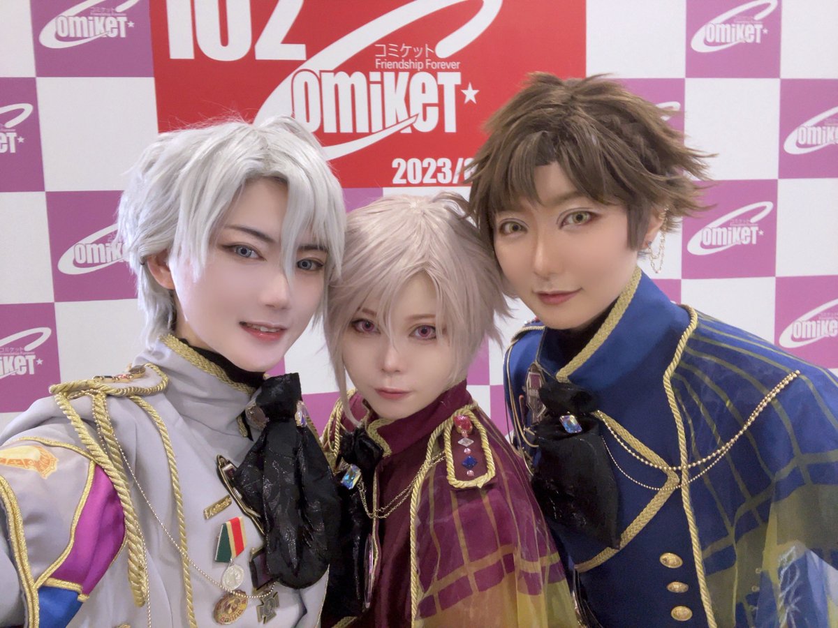 13 58 夏コミの写メ❣️今回はちゃんと前髪セットしましたよ(風が吹いてると認識してたので) 天の缶バッチはミワさんがくれた♡♡♡ありがとう🥰 23/08/13 12:01