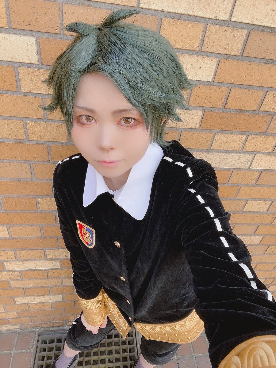 ダミアンに着替えた〜♡ 本日はアーニャ&ツイステのルークとヴィルといる〜☺️✨✨ 一昨日よりヅラ切ってメイク変えた #Uアコスタ2023