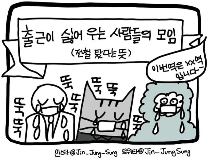 출근이 싫어 우는 사람들의 모임 (전철 탔다는 뜻)