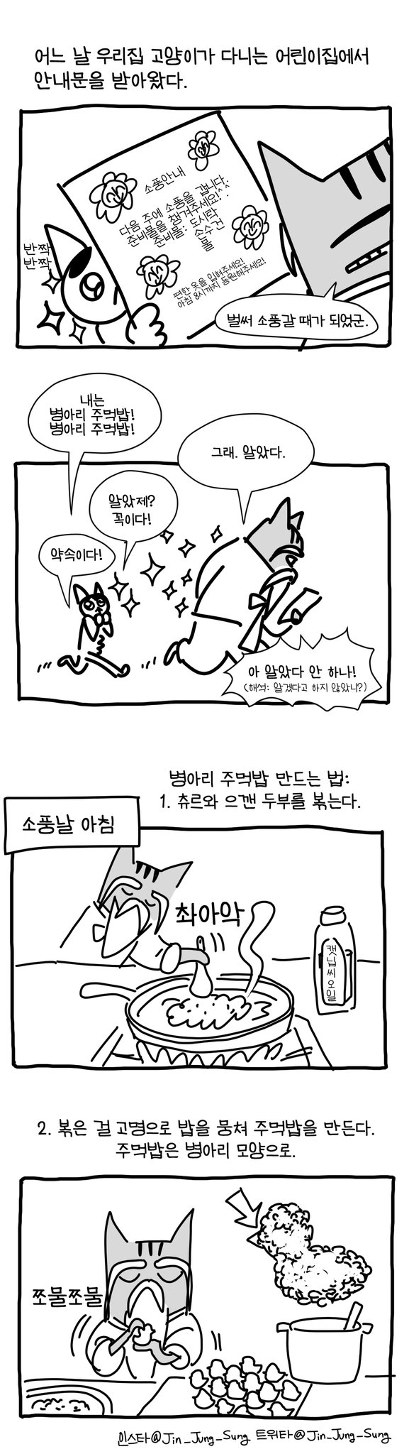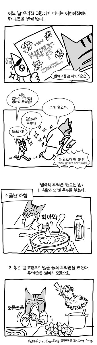 고양이 어린이집 소풍날 병아리 주먹밥 #뚝뚝만화데일리