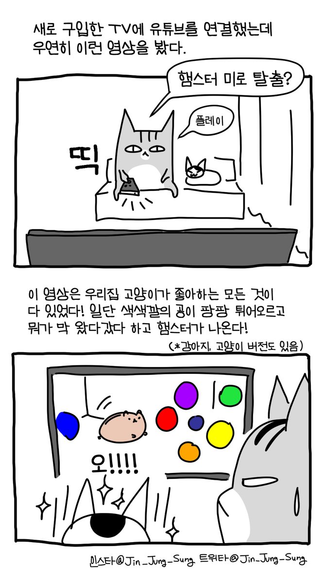 고양이와 너튜브와 햄스터와 아빠안잔다 #뚝뚝만화데일리