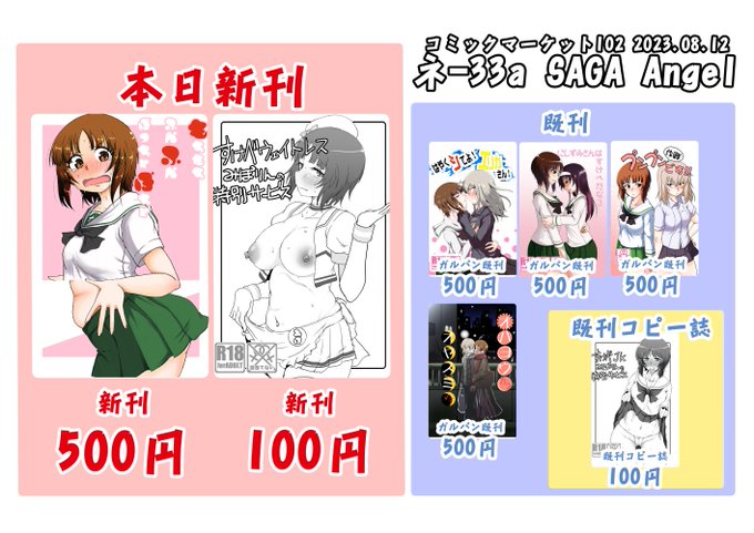 32 45 明日のお品書きです! オフセ、コピーどちらも新刊あります! コピー誌も100円で! できればオフセ本とご一緒にどうぞ! 23/08/11 16:01