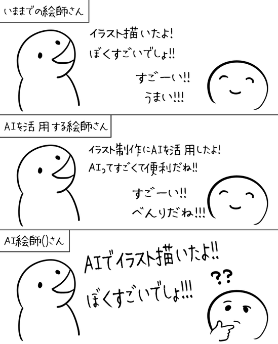 AIイラストについていろんな人の意見聞いて しばらく自分の中で咀嚼してたけど 最後に残ったのがこれだった。