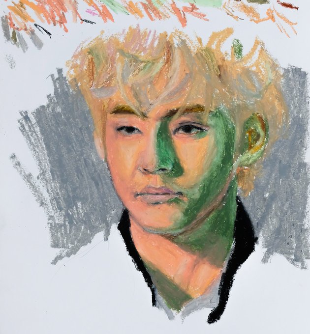 Taehyung in Oil Pastel (2020) I was experimenting different mediums during this time. #V #TAEHYUNG #btsfanart #oilpastel @BTS_twt