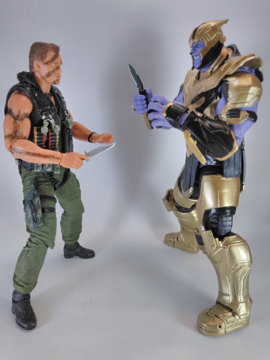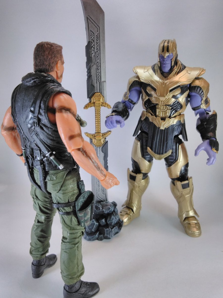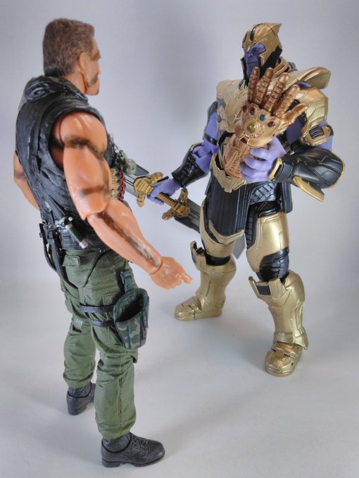 楽しみをふいにしたくはないだろ、 来いよサノス!こわいのか? ぶっ殺してやる! ストーンなんて必要ねぇ ガントレットにはもう用はねぇ 剣も必要ねぇや、へっへっへ 誰がてめぇなんか、てめぇなんかこわかねぇ! 野郎オブクラッシャー! #オモ写 #フィギュアーツ写真部 #コマンドー #サノス
