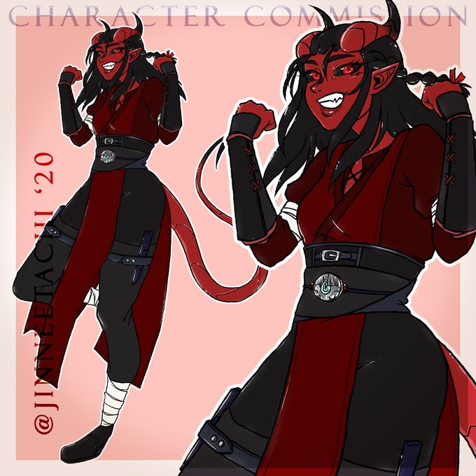 Commissions I haven't yet posted from 2020... ( ;;'//w//') I have a few more... 👉👈😳 Did I mention I have a Kofi now? (>D< )>" #sorryimlate #commission #dndart #tiefling #character #drawing #horns #tail