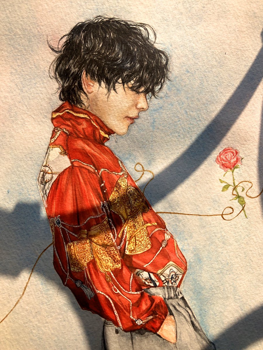posting here after many months xD Ref is the edit by @/yeonkiminsgirl #bts #btsfanart #TAEHYUNG #taehyungfanart #watercolourpainting @BTS_twt