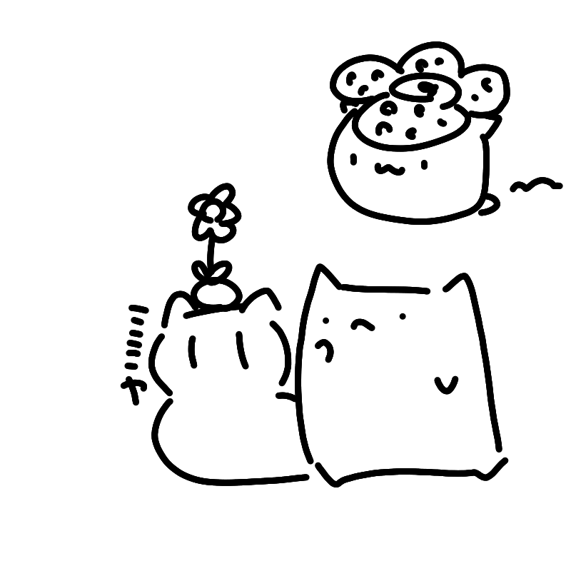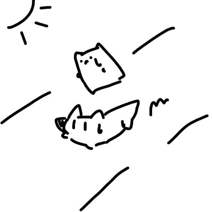 1 4 #あさのぼうりょくだんおえかきいっぷんくらい なにかをみつけたもすこねこ 23/07/12 06:29