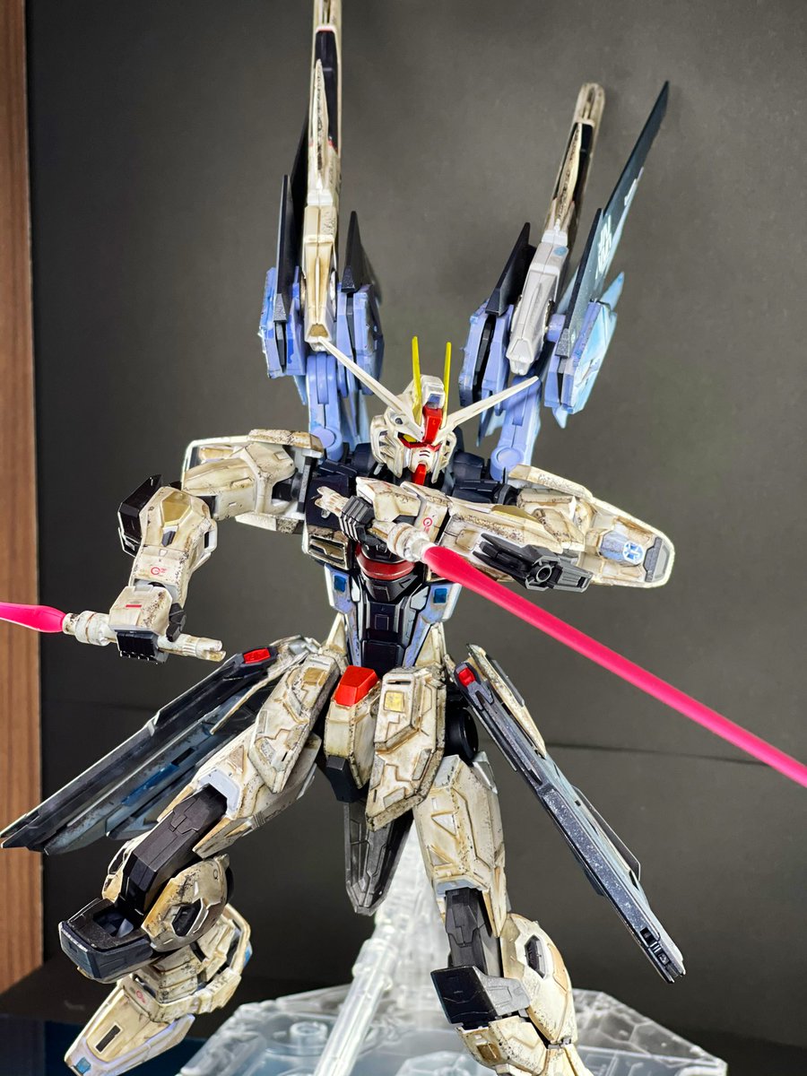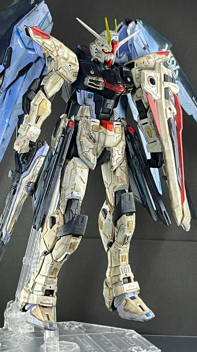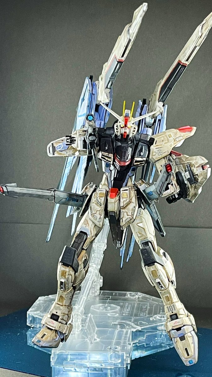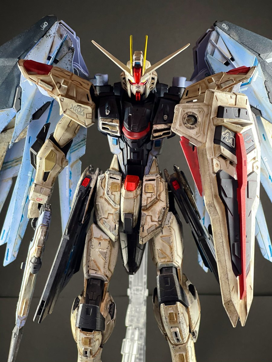 フリーダムガンダム 「戦場よりの帰還」 MG Ver2.0 (キラは被弾しないけど、最低限の動きで攻撃避けるから、相手の砲撃で機体が凄く汚れるっていう脳内設定です〜) #ガンプラ #ガンプラ好きと繋がりたい #フリーダムガンダム
