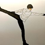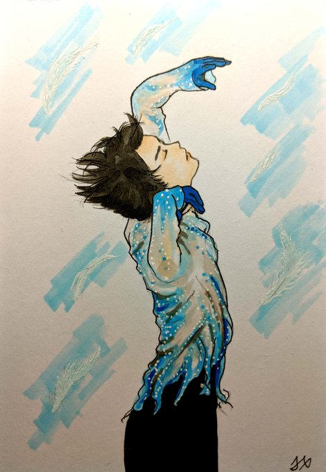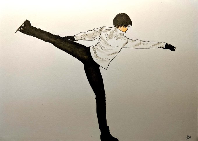#Inktober2019 #inktoberday11 #shomatober I have come to the conclusion that figure skating costumes are all hell to draw. The pants are actually dark blue, it took me three layers of blue and grey to get it dark enough.