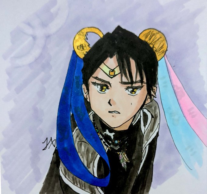 So I had a few minutes at work and I doodled a merge of #sailormoonredraw and #yuzuredraw 🤣 Might do a more legit coloured version later so we can appreciate the gold medals + ribbons more😆 Inspired by @yoshtsh 's #sailormoonredraw with Yuzu😆 twitter.com/yoshtsh/status…