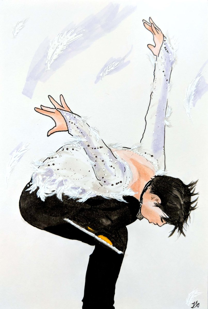 #Inktober2019 #Inktoberday13 Yuzuru Hanyu and the lost bug @ ACI. I added the heart because I would love a human who rescued me for the icy rink. ❤️