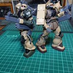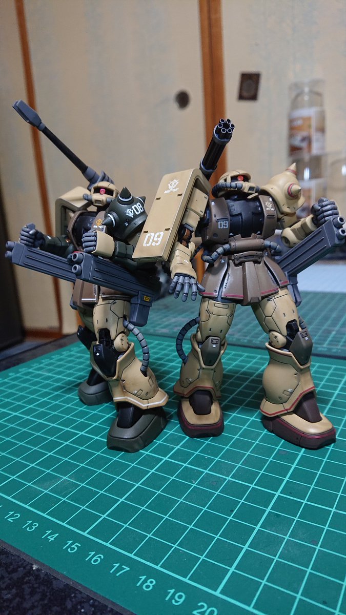 #今年作ったプラモ晒そうぜ ほぼ月1ペース? ジム7体、ザク4体。 ヴァースキ大尉のナイトシーカーかな? 時間かかったのは。 ヴァースキの「継ぎはぎのオモチャ」ってセリフを実感。 バレンスタインとカワセのナイトシーカーは、悩む。