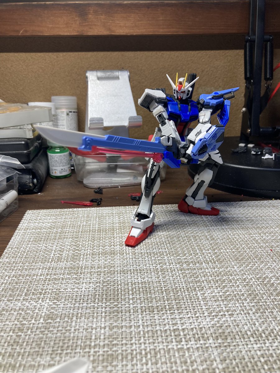 できたァァァ‼️‼️ 初のグラデーション塗装を施した EGストライクガンダム✨✨ 、、、わかりづらいか🤔 もっともっと練習が必要ですな😵 #ガンプラ #ガンプラ好きな人と繋がりたい #ガンプラの画像を貼るとRTされると聞いて