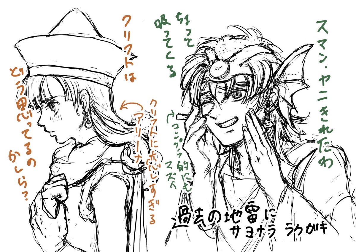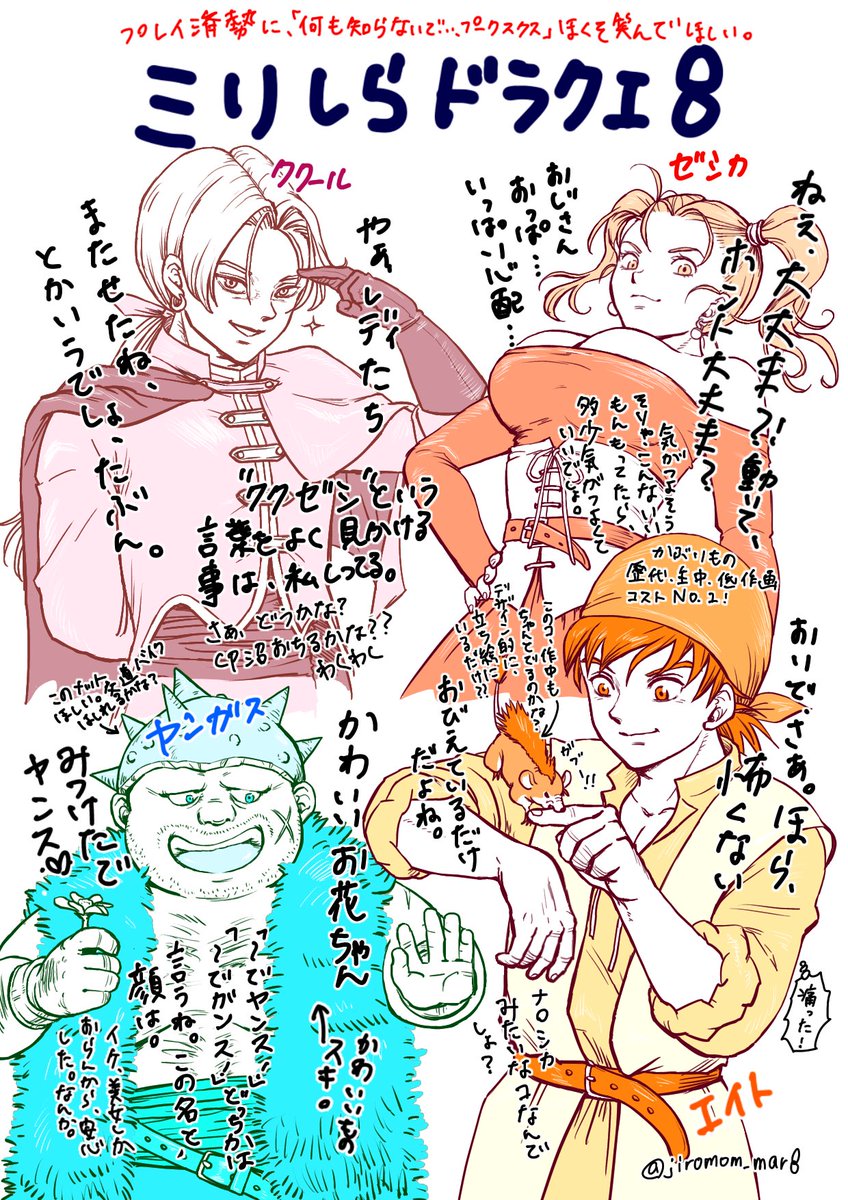 #今月描いた絵を晒そう (1/2) 前半初見ドラクエ8ばっかやってて、半月しか描いてない割には(私にしては)描けた方な気がする。 履修したてのおたくは筆が元気だよ! 暫くド8熱はさめそうにないです