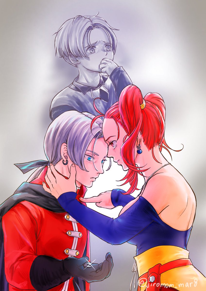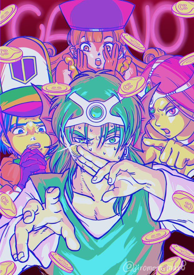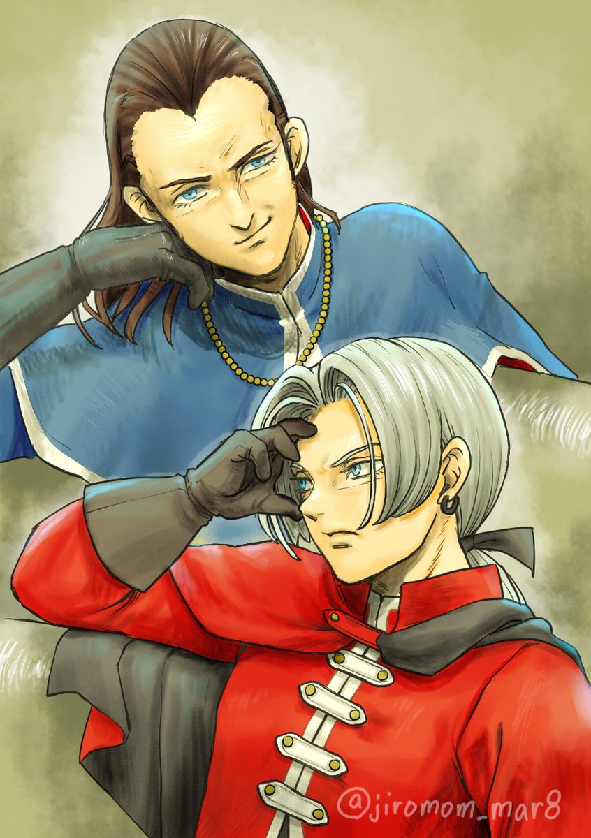 記念絵見て頂き有難う御座いました! あまり深い意味はないけど、王冠モチーフがついてる額の主人公はプレイ中王族である主で、リボンモチーフが着いてる額の主は男女選べるナンバリングの主です。 しかし、ナイン君のポーズのおかげで一気にホストクラブメンバー紹介顔写真になったね! twitter.com/jiromom_mar8/s…