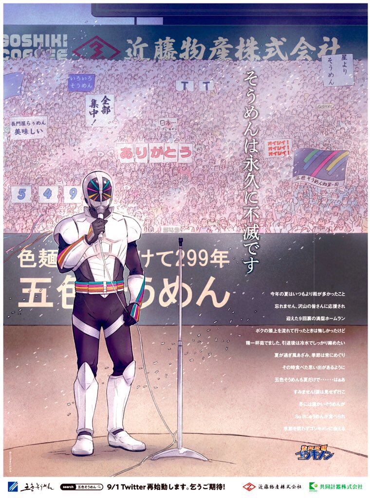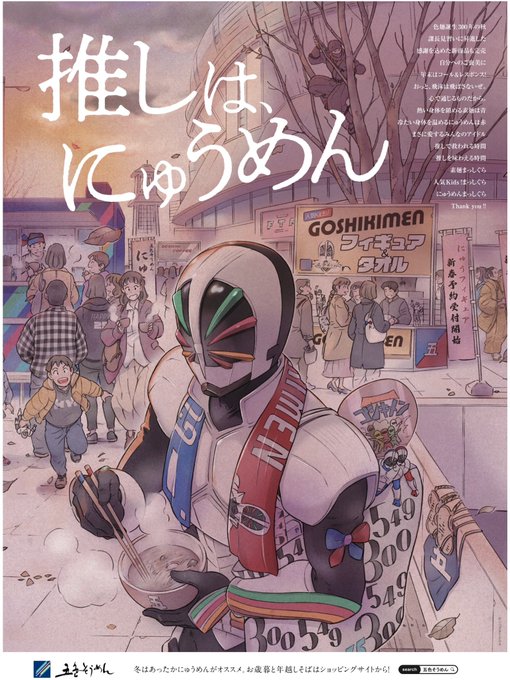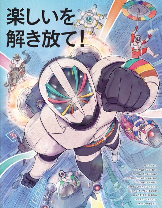 0 1 今日の愛媛新聞の一面広告にゴシキメン描かせていただきました。 これから先のワクワクする未来を 飛ぶゴシキメン⚡️(昔っぽさのある未来がポイントです) #イラスト #ゴシキメン 23/05/08 17:48