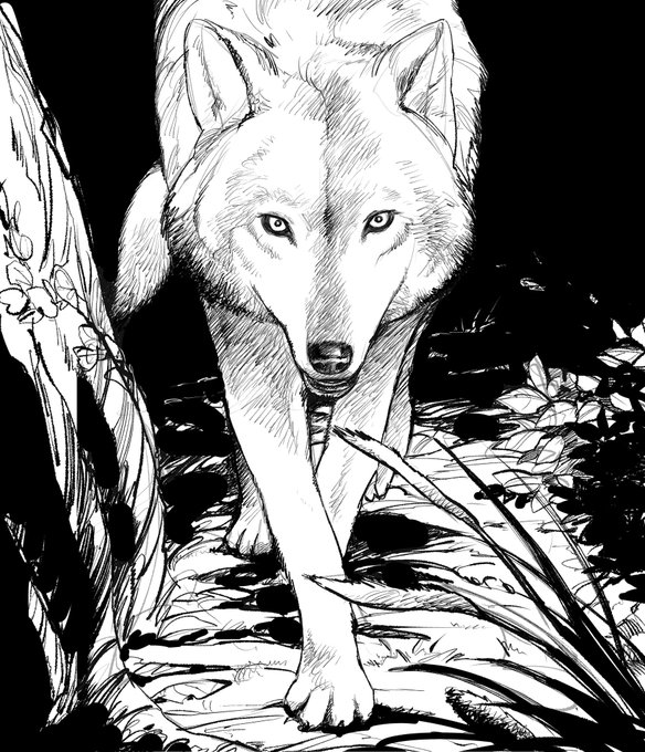 7 85 暗闇の中から出てきた狼 #イラスト 22/09/22 17:26