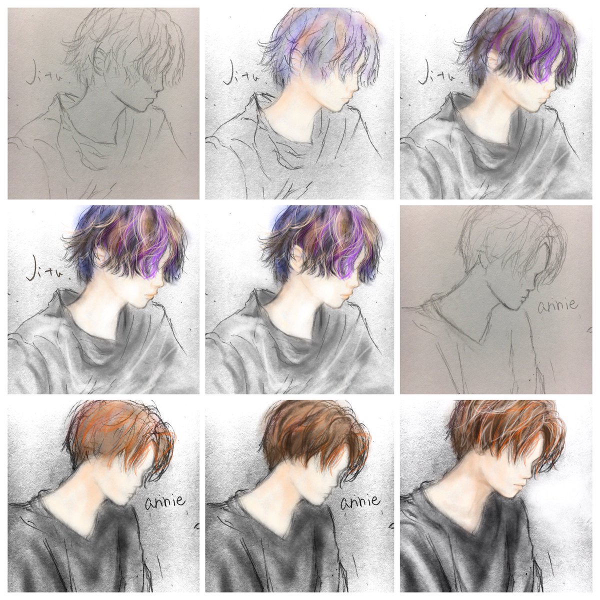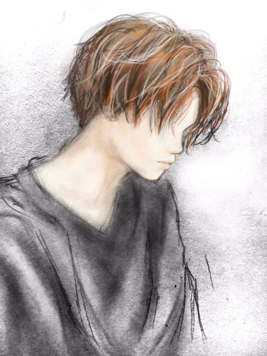 ざっくり完成までこんな雰囲気。 塗りながら形も整えてる。 下描きはアナログで、写真を読み込んで色を塗ることで手書き感を残したい。 #絵描きさんと繋がりたい #イラスト好きな人と繋がりたい #アイビスペイント #illustration #人物イラスト
