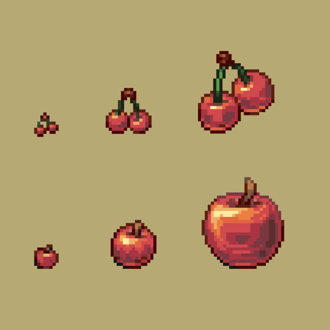 73 612 さくらんぼとりんご #ドット絵 #pixelart 22/07/14 20:24