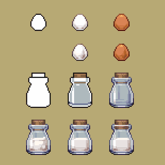 55 849 卵とミルク #ドット絵 #pixelart 22/07/16 19:56