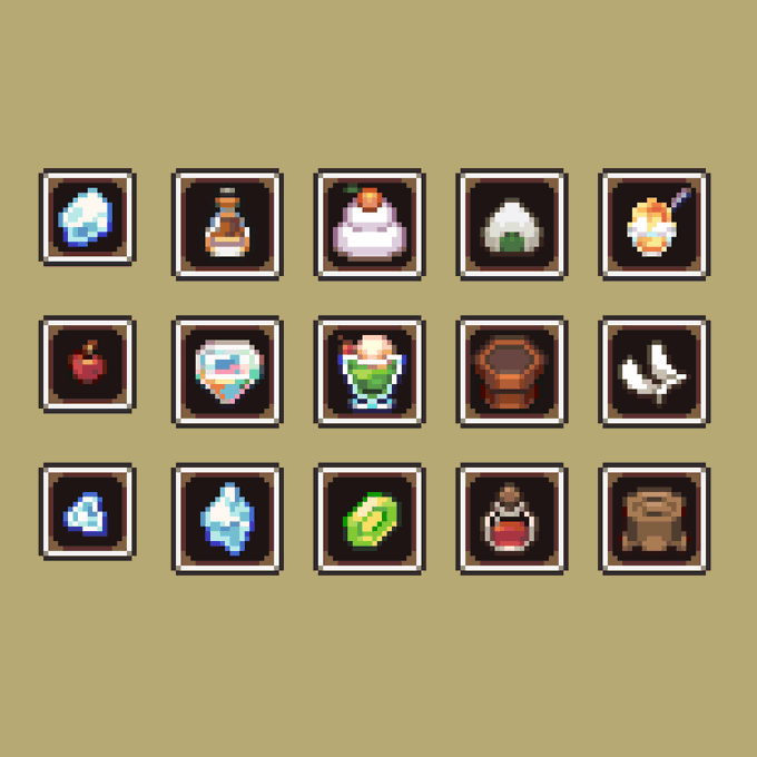 いくつかのアイコンをまとめた。 描いた時期が違うので、描き直したい気持ちも…! #ドット絵 #pixelart