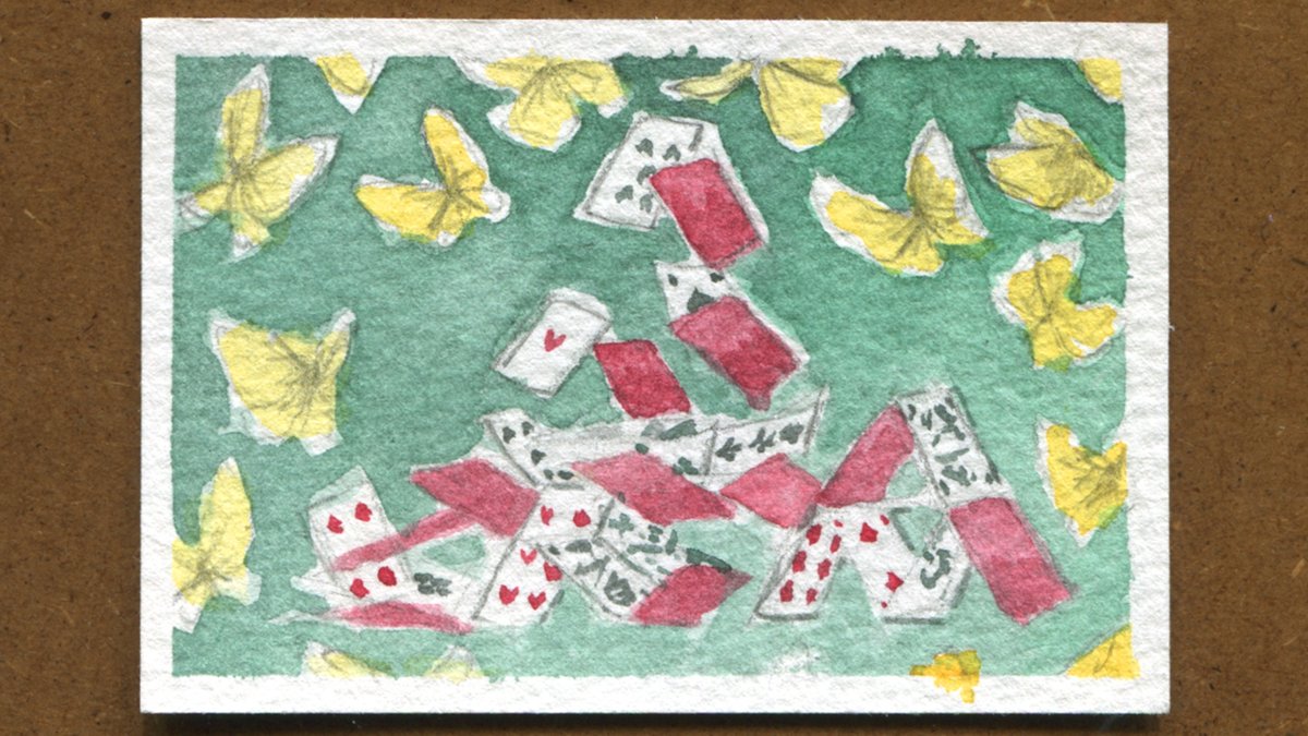 2020年7月31日目 2021年に2020年の水彩画のイベントのお題に挑戦中 【お題】 31. DO-OVER やり直す #illustration #透明水彩 #水彩画 #Watercolor #watercolorpainting #アナログ絵 #一日一絵 #毎日絵 #イラスト好きと繋がりたい #イラスト #描き納め #トランプ #蝶 #蛾 #紅白