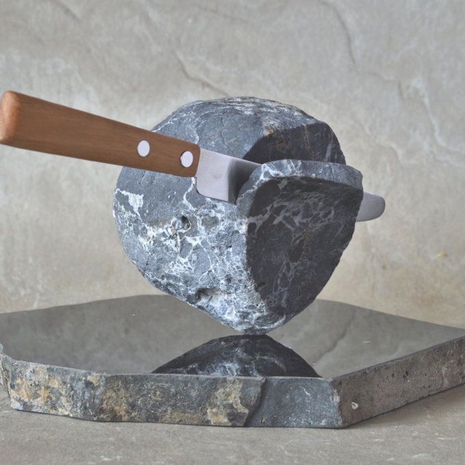 改めまして石屋をやりながら、石を素材に作品制作しています。 今年4月から使われている中学一年生の美術教科書(日本文教出版)で作品を紹介してもらってます。 #4月なのでフォロワーさんに自己紹介しようぜ
