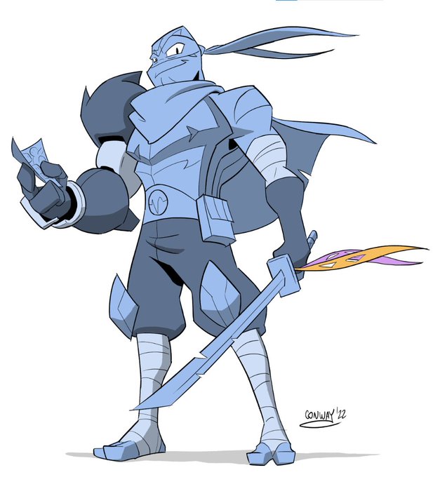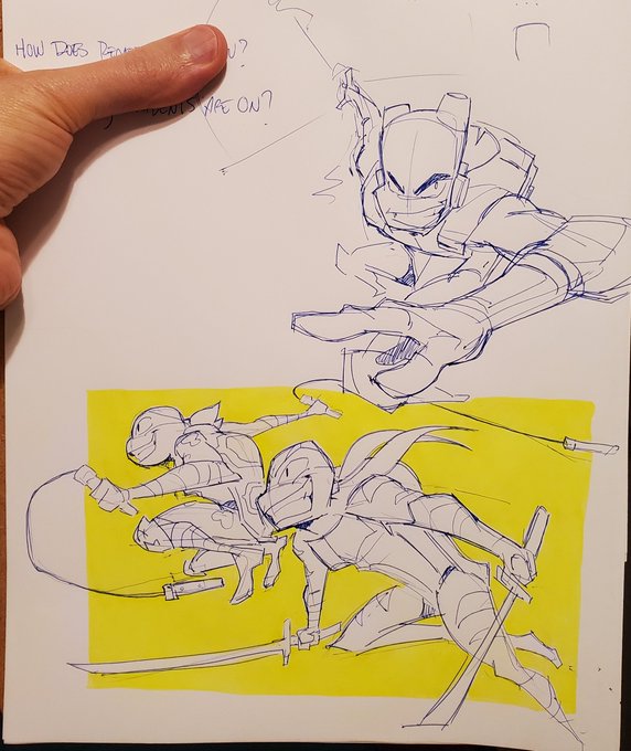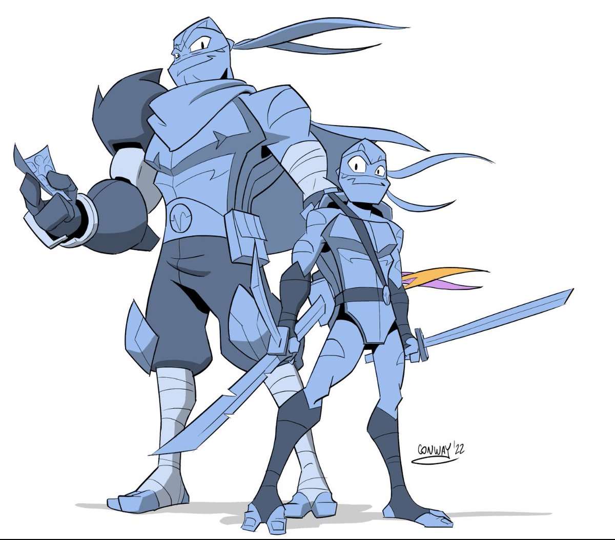 I wish I'd saved the #RiseoftheTMNTmovie post that inspired this, but someone shared a drawing speculating that if Future Leo's jaw got bigger, would Donnie's already gigantic forehead get bigger in the future? Inspired this shitpost of a drawing. #RiseoftheTMNT