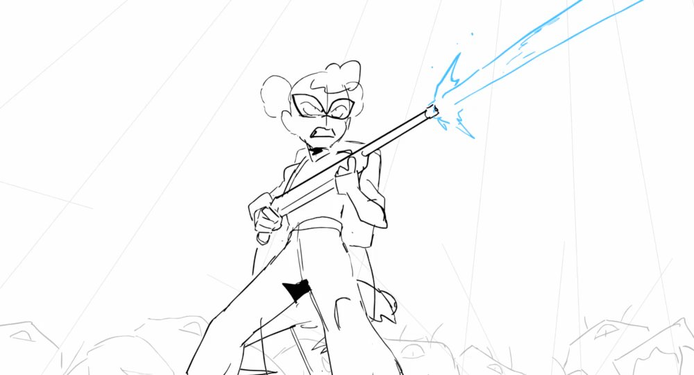 Grimlock says "Go watch the final episodes of #TransformersEarthspark season 1, now up on Paramount+!" I was given the privilege of directing the finale, and this is a panel I drew for that episode. #Earthspark