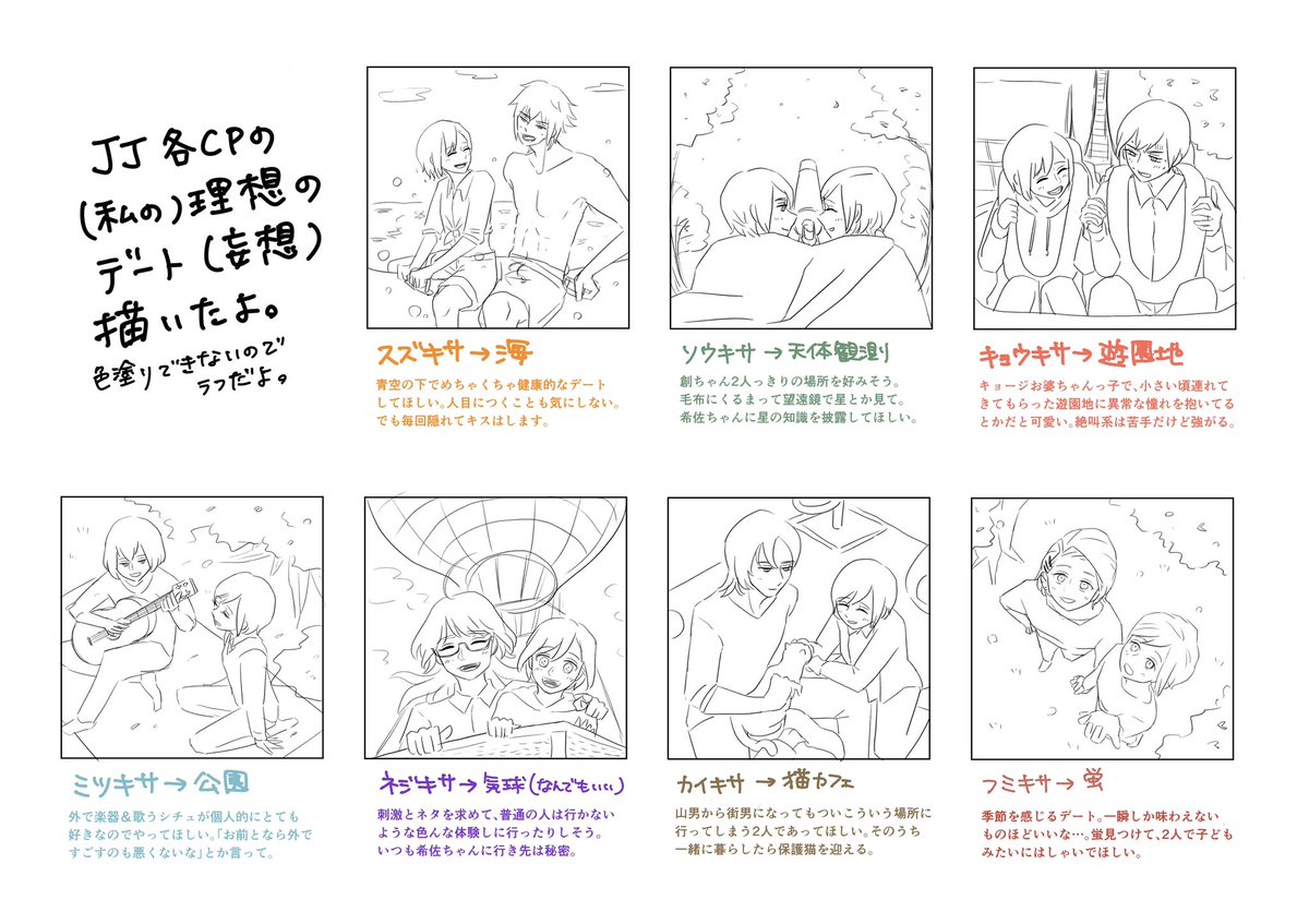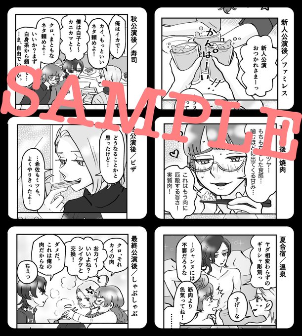 『クォーツ76期卒業文集』自分の寄稿部分のサンプルです🙌 クォーツの各公演後の打ち上げを見せてくれーってずーっと思ってて、思いが募って、3Qメインで描きました😃 いよいよ再来週プチオンリー!楽しみ! twitter.com/jj_3quartz/sta…