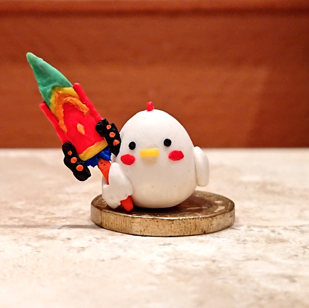 94 Day KFP employees One chicken a day, make the KFP stronger Made by Oven-bakeing clay When a chicken steals his mother's sword as a toy, it becomes too big to wield >_< #ArtsOfAshes #絵ニックス #kfp