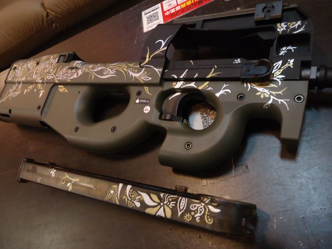 きのうの貸し切りサバゲー唯一の女性参加者が使用していたP90。 自分でペイントされたそう、綺麗だな~(*´▽`*)